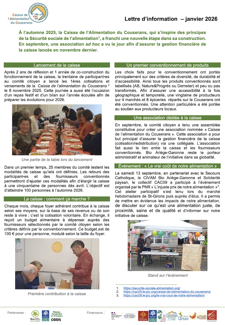 À l’automne 2025, la Caisse de l’Alimentation du Couserans a franchi une nouvelle étape dans sa construction. En septembre, une association ad hoc a vu le jour afin d’assurer la gestion financière de la caisse lancée en novembre dernier. Lancement…